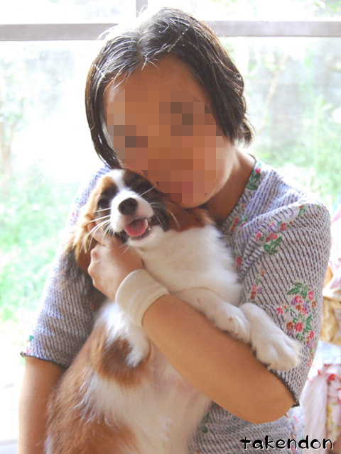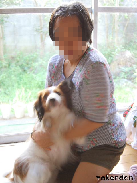 人間は炎天下、犬はお婆ちゃんと涼しい家の中。