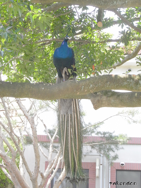 孔雀が放し飼いになってます。