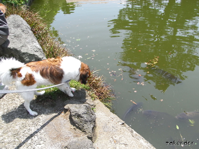 池の鯉にご執心のジョバンニ。