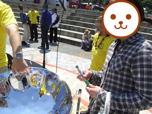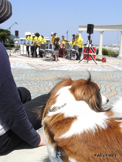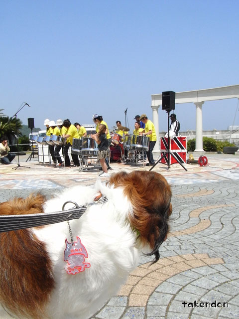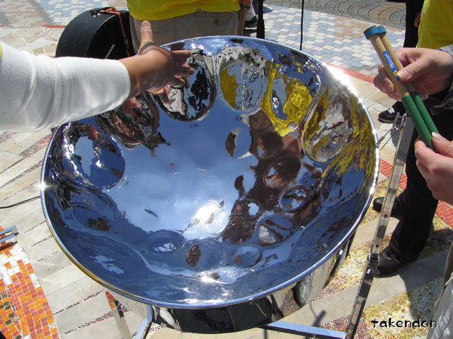 暑かった。天気良すぎて暑かったです。スチールドラム、綺麗な音でしたよ。何より演奏してる方たちが楽しそうで、何か見てて楽しかった。実際にドラムの前に立ってみたら、確かにまぶしかったけど、角度的に太陽の方を向いてた訳じゃないので、見れないほどじゃなかったです。(でも音階の区切り部分は全体がギラギラしてるから見辛かった。^^;)