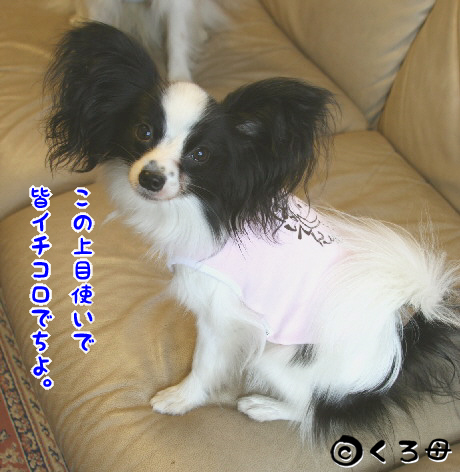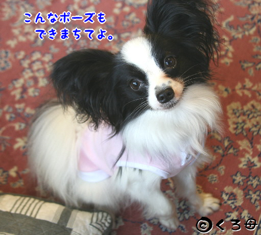 うちのジョバリンはねー・・というかジョバンニはねー、自分にメリットがありそうな時っていうのを覚えているんですよ。私が何を望んでるかも解ってる。洋服着せられて、それ自体は嫌じゃないのね。可愛いって言われるから。でもカメラが出てきたら=「オヤツくれなきゃ笑わない」って感じですね。あざとい。小利口ってこういう事か・・・
