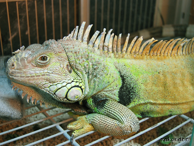 頭から背中あたりまでの大きな背びれは意外と軟らかいので刺さらないのですが、爪と、尻尾の先の方の小さい背びれの延長線の鱗がヤバイです。ザックリと行きますよ。イグアナ皆が皆って訳ではないのかもしれませんが、お風呂が好きなイグアナさんは多いです。バスタブにぬるま湯をはって入れてみるとそりゃあもう上手に泳ぎます。・・・が、大パニックを起こしてイルカの大ジャンプの要領で縦に飛び上がってきますよ。超怖いです。(--;
