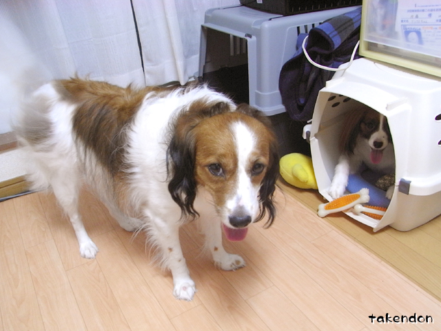 ジョバンニも飽きた玩具をそこらに放置するから、リンに回収されるんだけどね。リンもがめ過ぎるのよね。何でもかんでも持って帰っちゃうから・・・全部リンの小屋に集まっちゃって、ジョバはリンが居ない時に遠慮がちに持っていくのよ。(兄さん、弟が在宅だとくれって言えないので・・)
