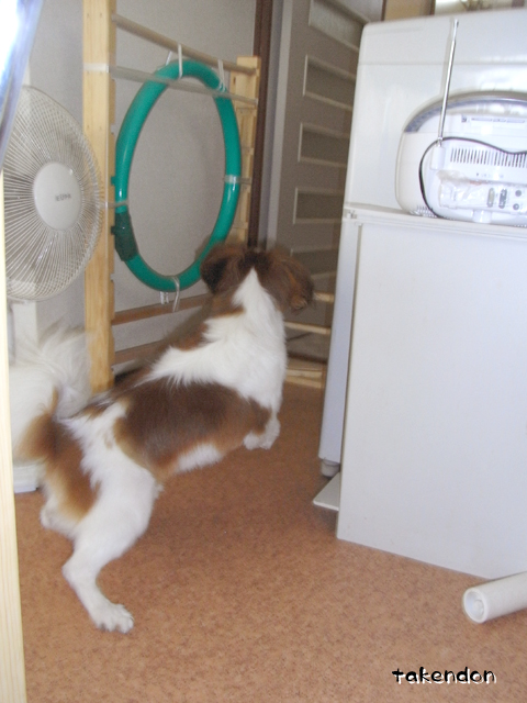 うちはハンガー掛けの下のスペースに無造作に犬グッズが置いてあります。