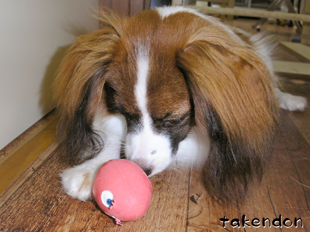 ブル足はおもちゃです。最初の方の写真でリンが抱えてる茶色のぬいぐるみ材のボールで、これもリンのお気に入り。中に笛が入っていて、犬の足みたいな形をしています。(多分ブルの足)これとたまごちゃんとベイビーボールというフカフカボールがリンの3大玩具です。