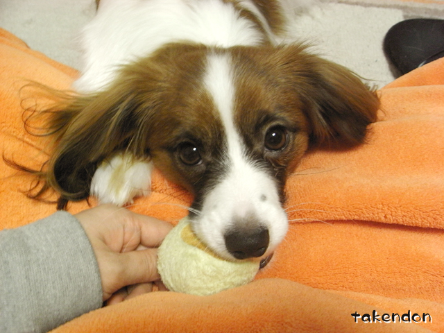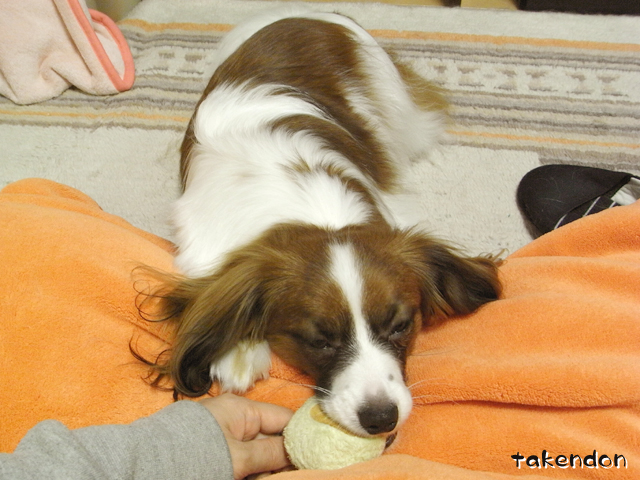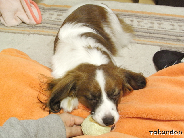 ボールくわえたまま寝ちゃってるリン君、かわいいな〜〜〜〜〜。