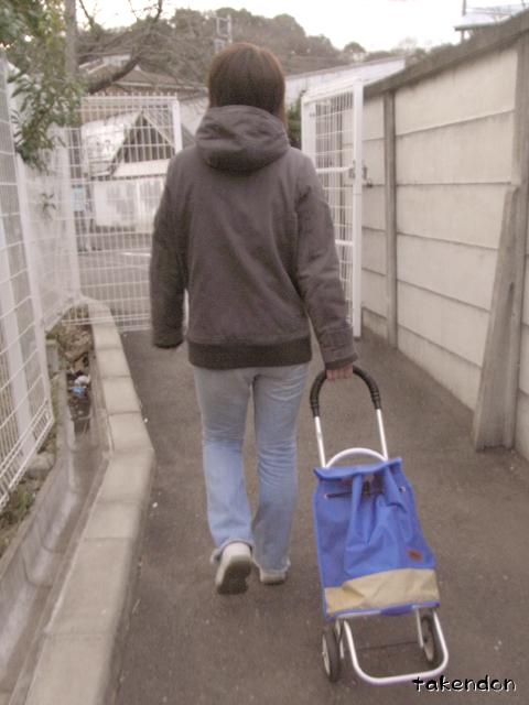 お買い物カートを引きずって、