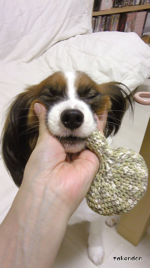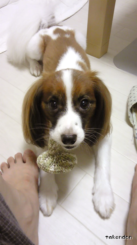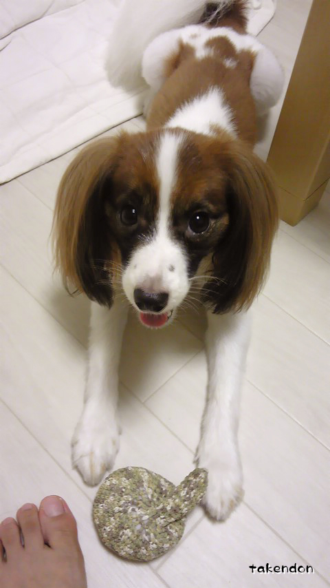 大変ですよ、えぇ。ストークに次ぐストークで、一瞬たりとも油断できないぜ。キノコはまだまだ沢山あるよ。ジョバと違って壊さないからね、リン。しゃぶるけど。wしゃぶってしゃぶってビッチョビチョになってるけど、本犬は目を輝かせて楽しく遊んでます。そしてクサクサなので洗濯行きになったキノコの変わりに別のキノコが登場というローテーション。お陰様で、3個くらいでグルグル回ってますぞなもし。本当、ありがとうございます。