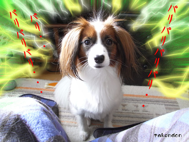 バチッときてもリンは意外と平気です。一瞬「ウヘッ?!」ってなりますけど、「今なんか変な感じだったね~?エヘヘ♪」ってところでしょうか。ケロリとしてますよ。そして全然懲りずに寄って来る(触って来る)ので、人間の方がビビッてます。^^;