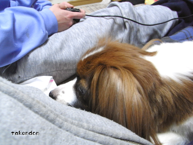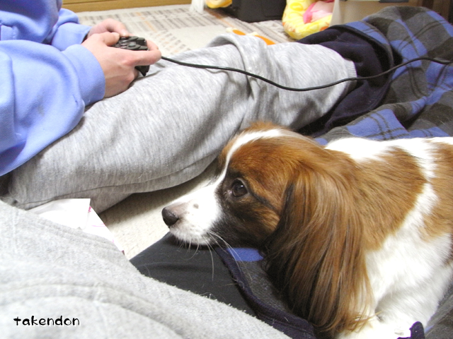 何でこんなに好きなんでしょうねぇ。チィ姉ちゃんがゲームやってた時に、平日私は先に寝る事が多かったんですけど、そういう時ジョバは寝てもリンはチィ姉ちゃんにくっ付いてたり、私のベッドに来ても、布団の隙間から手を出してベッドに寄りかかってるチィ姉ちゃんにピトッと触って寝たりしてましたよ。
