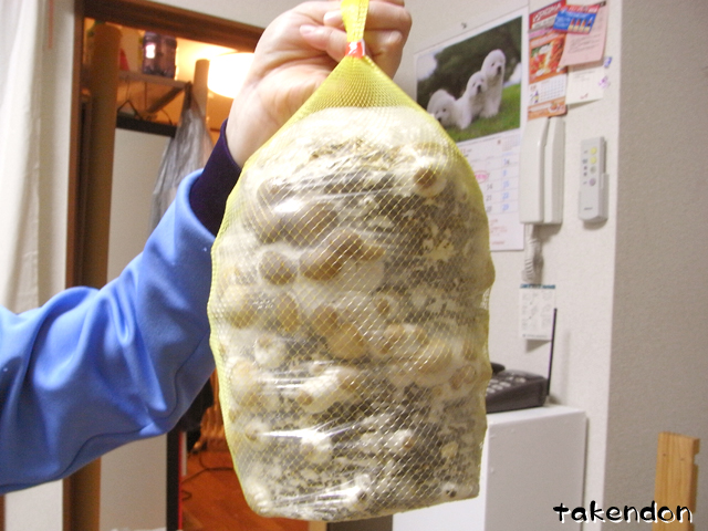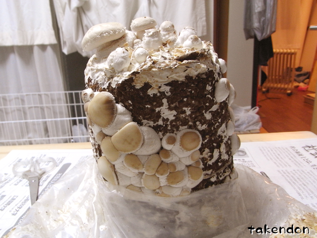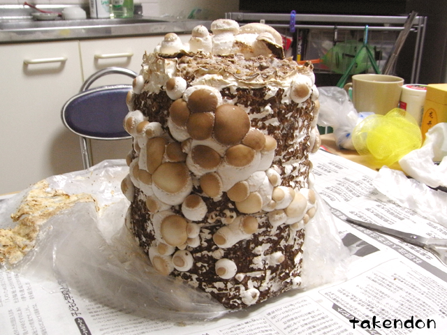 丸太と菌も売ってましたよ。でもあれは置く場所無いし、外だと乾燥してるから難しいらしいですね。以前に母がやってました。見事に出て来なかったよ。愛着はわきますね。でも見れば見る程、菌!って感じで食べ物って感じしなくなってきます。(食べるけど。)