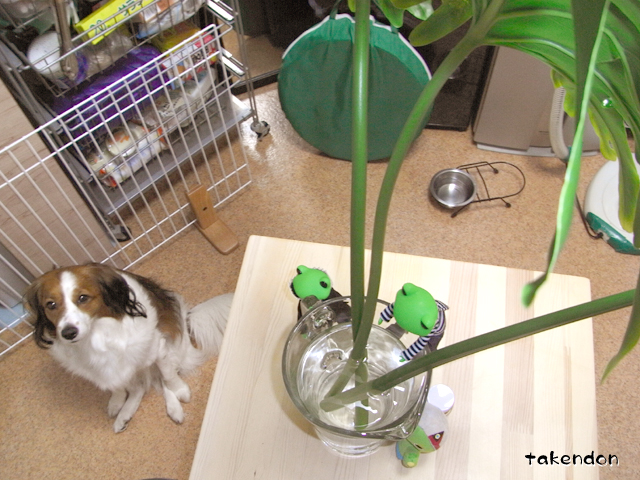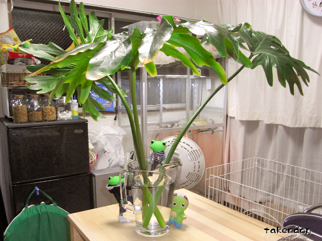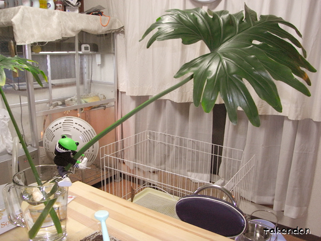 葉っぱ切ってもタマさんのお部屋からは出せないんですかねぇ?そのうちタマ家は熱帯雨林と化するんですか?バックにバナナもぶら下がってるし。