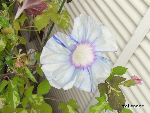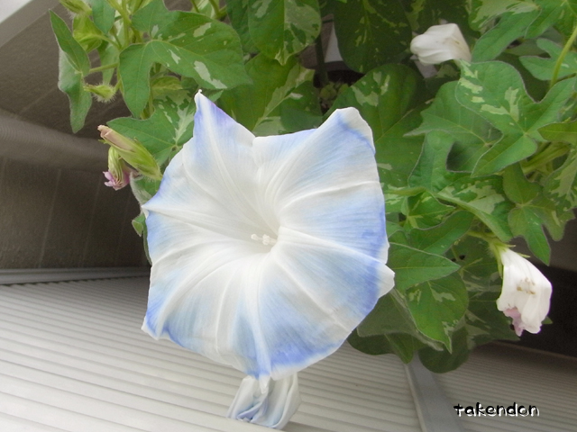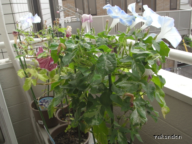 朝顔もいろいろあるんですね。我が家の子たちは「よし。じゃあ、今日からは勝手にベランダのてすりに巻きつくんだよ!」と言われ、せっせとやりたいようにやってらしゃいます(笑)
