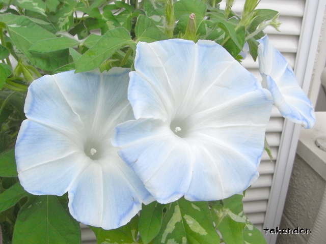 水戸あおいは毎日大量に花を咲かせています。メーカーのサンプル画像は多少誇張されている色みたいで、あんな真っ青にはなってませんが、美しい水色がサンプル画像みたいな感じで出てます。涼しげで綺麗な朝顔さんです。(大輪なのでシンナリしてきた姿がちょっとクラゲに似ていて更に可愛いです。)