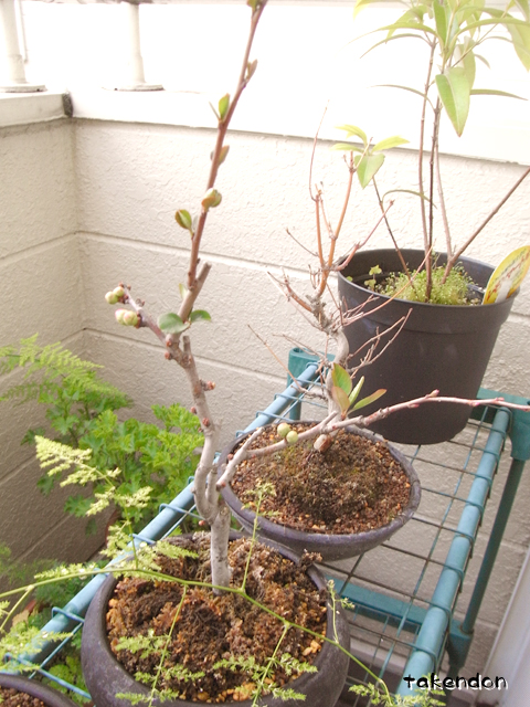 桜の盆栽は、何で咲かないのか解りません。解り合えません。でも元気に生きてるから、もう良いやそれでって感じになりつつあります。寒くなって落葉して真っぱになっちゃって、春が来て葉っぱが出てくるの見ると嬉しかったりしない?何か、おかえり~って感じでそれはそれで幸せだったりするのよね。