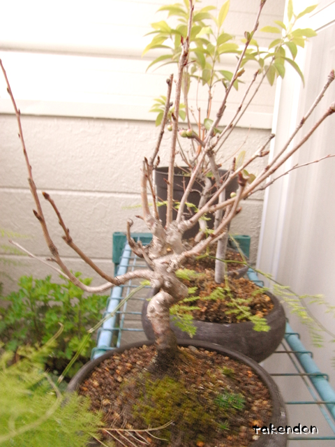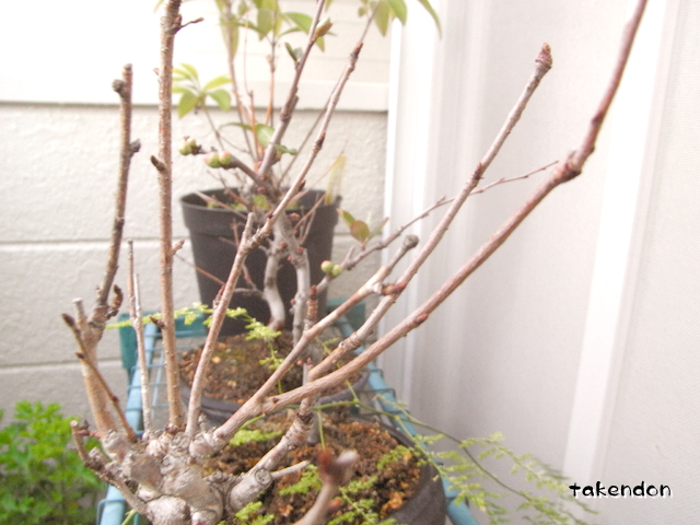うちの桜の盆栽も、やっぱり葉芽の模様。。。もうどうしたらいいんだろうね?アレ。