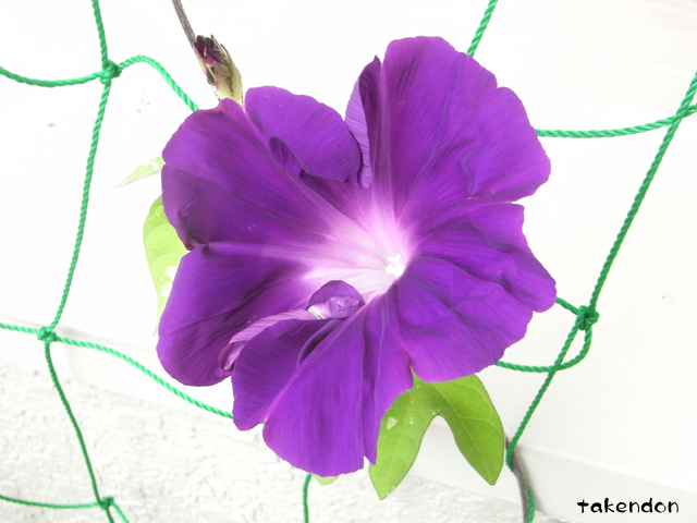 朝顔ねぇ、何か凄くノンビリしてるんです。確かにスタートが遅かったので、まぁ・・って感じはあるんだけど、でももう花が咲いてもおかしくないくらい育ってるんだけどなぁ・・・。一度軌道に乗ったらトントンいくのかも。紫は今日も1輪咲いてますよ。(たぶん明日も咲くね。開きそうな蕾がいくつかあった。)