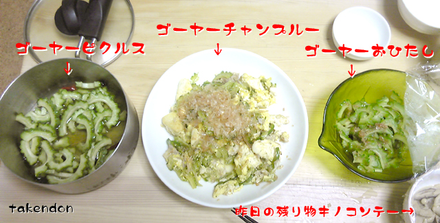 ゴーヤとかもろもろお野菜消費してくれてありがとう~。助かったよ~。ゴーヤ薄くスライスして、さっと湯がいて、めんつゆとかつぶしでおひたしにするのもうまいよ。ちょこっとごま油も垂らすのだ。