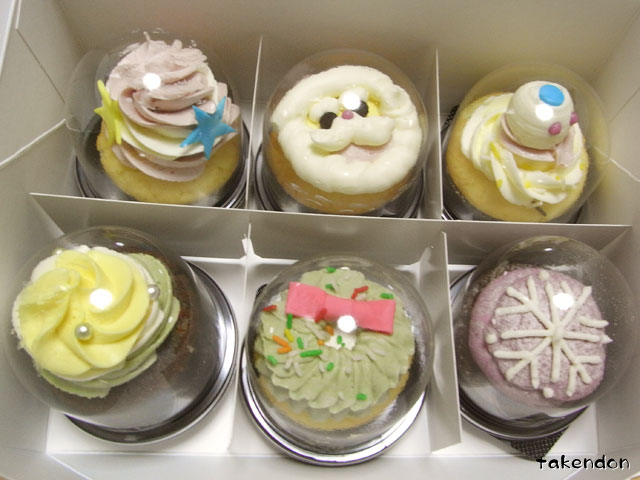 このカップケーキはクリスマス仕様の品だそうです。カラフルなデコレーションはバタークリームで出来ていて、んー・・・・ユーハイムのフランクフルタークランツをもっとあっさりさせた感じの味でした。甘過ぎず、美味しかったですよ。通販(楽天だった。http://www.rakuten.co.jp/ricott/)もやってるので、宜しかったらどうぞ。・・って別に回し者じゃないですが。(笑)