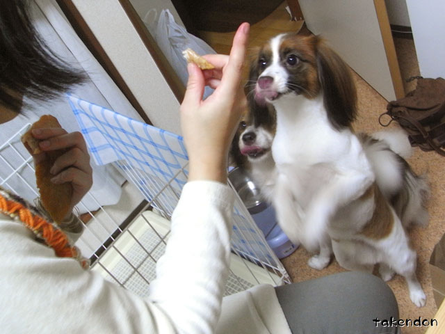 ジョバリンに歓迎されている貴方は、犬達と戯れているというよりも、犬に襲われている人のようでした。昔、実家でルーの仔犬達に髪を引っ張られ、まるでガリバーの様に動けなくなった貴方を思い出しました。多分・・・そのガゼルみたいな草食動物的オーラが「この人は絶対怒らない!」と犬達に思わせるに違いないです。犬を飼ってる人をザーッと思い返すに皆、肉食又は霊長類系オーラを発してます。「調子に乗ったら噛み殺すぞ(笑)」レベルの、内面から薄っすら漏れてる威圧的オーラを、犬達は鋭い野生の勘で察知しているのだろうと思います。今まで、それなりに来客もあり何度も歓迎の儀式を見てきましたが、明らかに・・・何か違います。でも、好かれている事には変わりは無いし捕って食ったりはしないので、今後も仲良くしてあげてください。