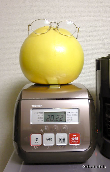 炊飯ジャーに登ったバンペイさん。