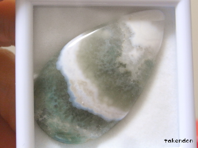 ジャスパー、綺麗でしょう?ジャスパーって一言で言っても、オーシャンジャスパー意外にも種類があるんですよ。ピクチャージャスパーとかゼブラとかダルメシアンとか・・まぁ、大体柄から来てる名前ですけどね。あ・・・カプチーノジャスパーっていう美味しそうな色(カプチーノ色&ミルク色&ココア色のマーブルっぽい色)の見た事ありますよ!・・でも、あれは商品名なのかしら??とにかく美味しそうでした。^^