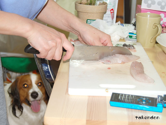 黙々と切り身を作る