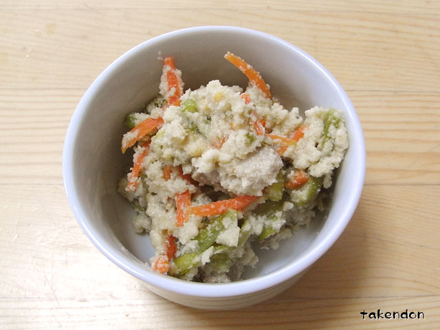 おからは、生だとあれなんで、一応炒ったり煮たり何だりかんだりしてお食べやす。シャリシャリしてて独特な食感がハマル人はハマッちゃうと思うぜ。
