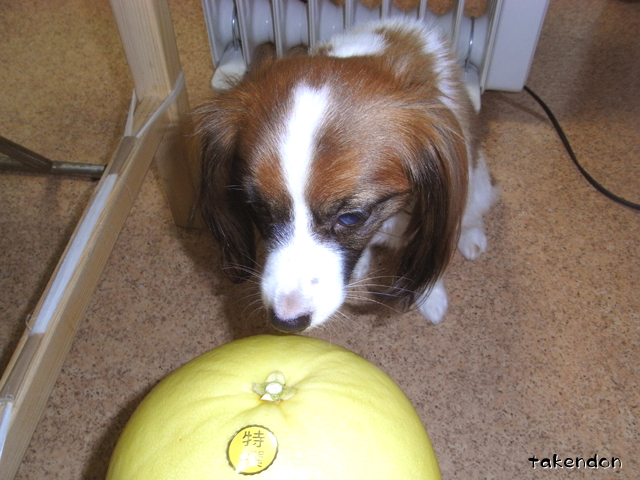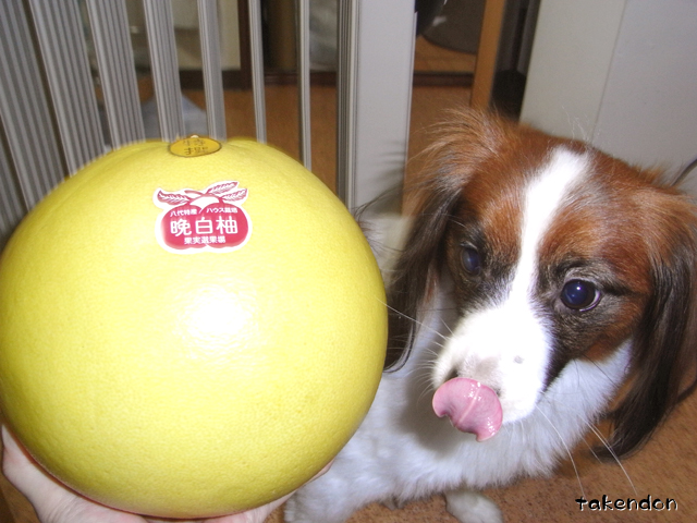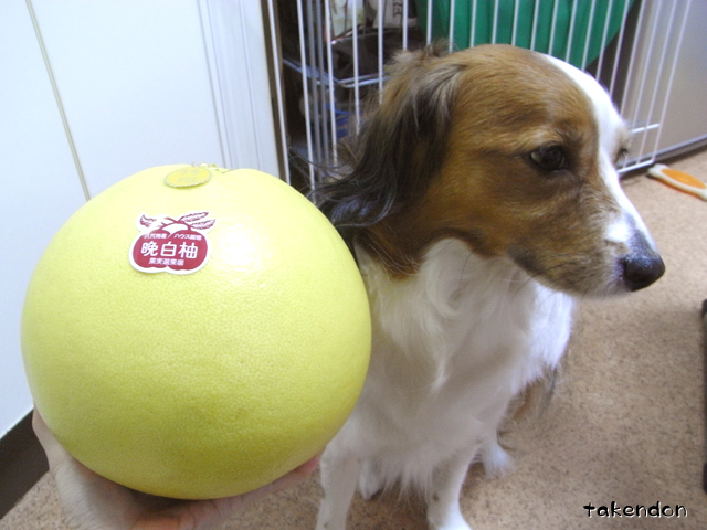 グレープフルーツ!誰かも言ってたなぁ。メイシェちゃんとこのミアさんかなぁ。以前ブログに載ってたし。食べるのも楽しみですけど、見た目が異様で、もうそれだけで充分楽しんでます。