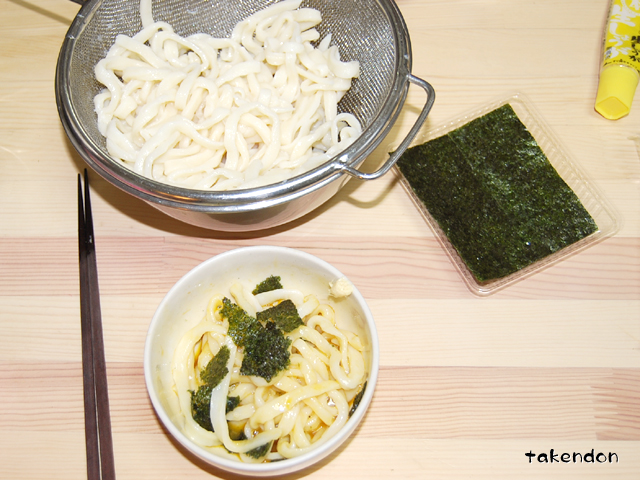 コシのあるうまいうどんは、醤油とネギとゴマとかつぶししょうがだけでもイケますよね♪