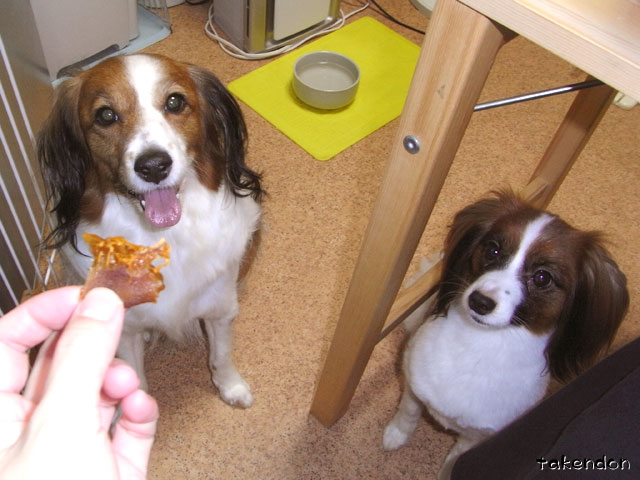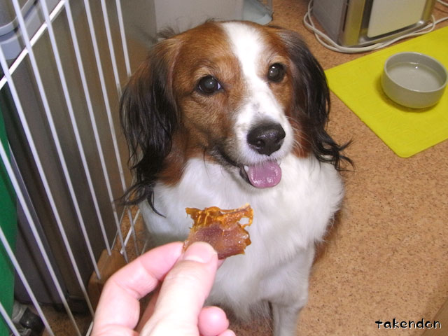 ジャーキー、オリーブオイルとローズマリーなすったやつ新たに仕込んだのだ。まめちょも3秒だったよw きなたんお気に召したようで、いつまでも空中のにおいをかいでおりました。次回はコレもってくぜ~w