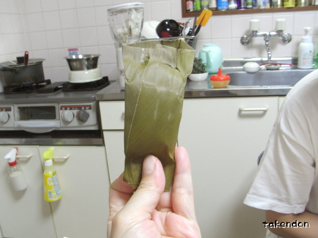 ミキは・・・甘酒って言うよりオモユ。イメージですけど、障子糊みたいな感じ??(笑)かしゃ餅は、うちの母も「ちまき~」って言ってなぁ。うん。・・そんな感じですね。でも・・ゴザ(イグサじゃなくて完成品のゴザの方)の匂いがすると思った。何でかなぁ・・・外側がやっぱり笹じゃないのかも。(でか過ぎるもんね。)