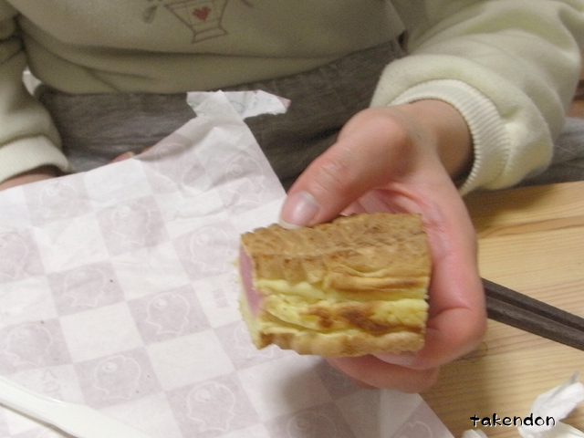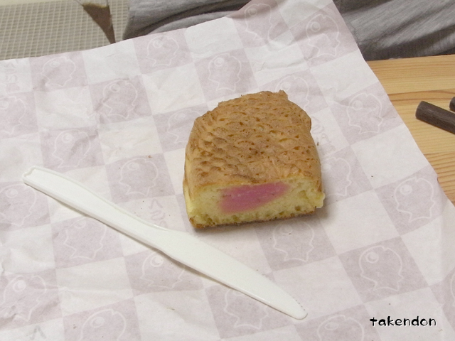 鯛焼きを切って食べる。