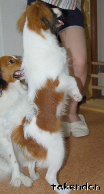 たまに、この体制から2足で真上に跳ねたりします。