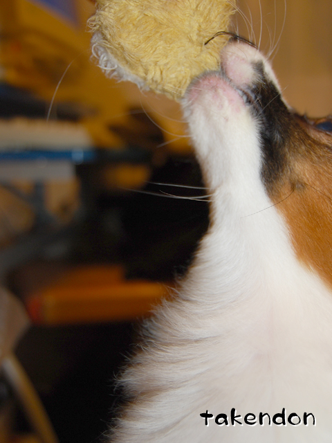 前足で持ち上げて掲げたい様なのですが、