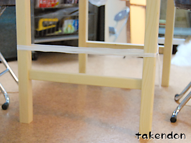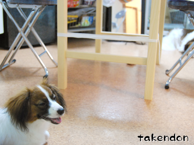 我が家のダイニングテーブルの足に、