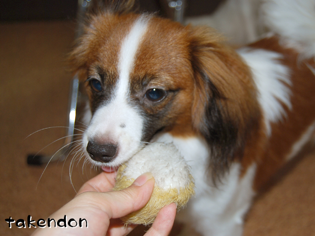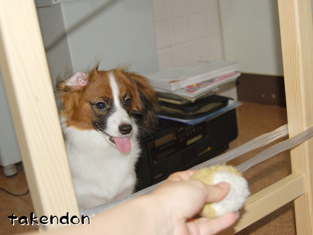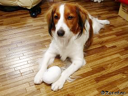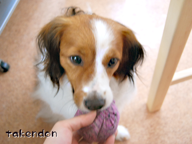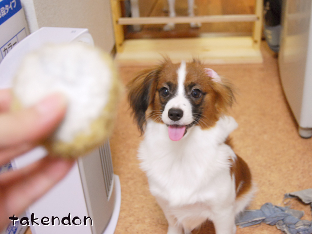 ジョン君が中華まんで遊んでいるわ!!