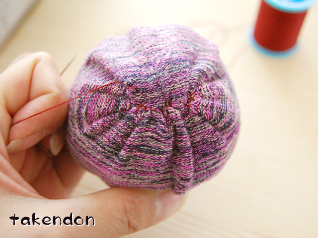 程よく硬さを持たせると、布玩具の割りに弾みます。