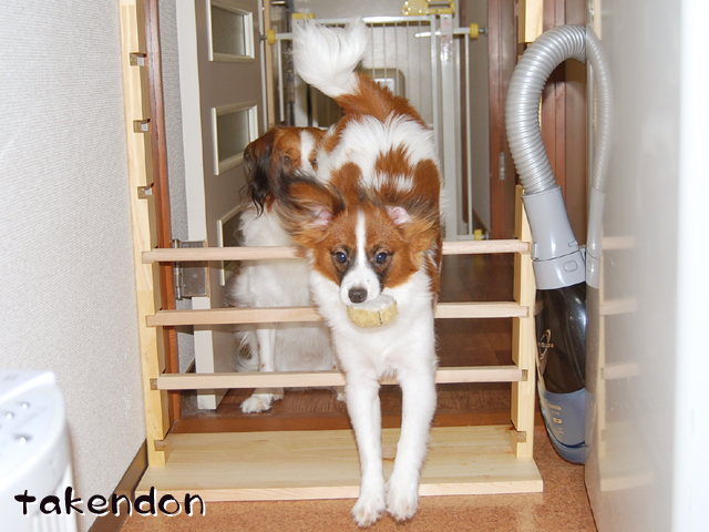 結局はいつもの廊下でボール投げです。