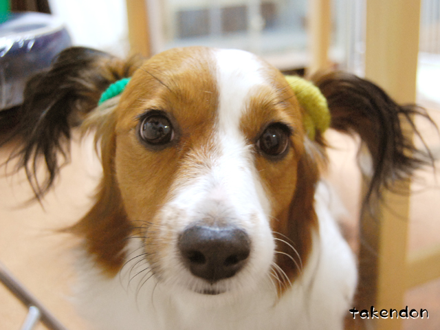 ラスは・・・耳が小さいから結べないかなぁ。。。リコは まだ毛がないから(笑)