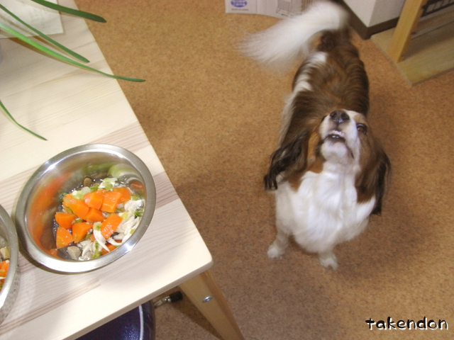 そして、包丁で野菜を細かく刻みだすとジョバ君なみの興奮っぷりです^_^