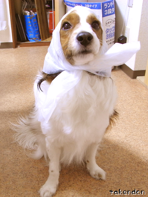 ジョバくんもリンくんも優しい顔だから似合いますね~。それにしてもこんなにほっかむりの似合う犬がいるだろうか。いやいないwジョバくん睫毛長いし~。手毛もすんごい毛ぶきがいいのね~。
