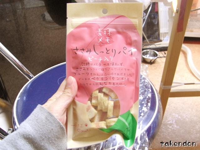 ピーチ臭しますけど、香料じゃないんじゃないですかね?(香料だったらもっとほのかで甘い匂いにするんじゃないでしょか?)パッケージにはピーチ入りって書いてあったから、リアルなのでは?自分、食べてみました?匂い=可/味=可なのに両方合わさるとえもいわれぬ不協和音を奏でるのは何故でしょうね。^^;ご覧の通り、ドギーズは激しく喜んでましたよ。