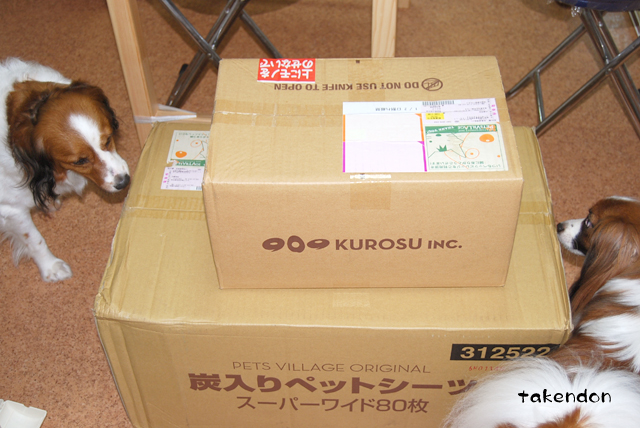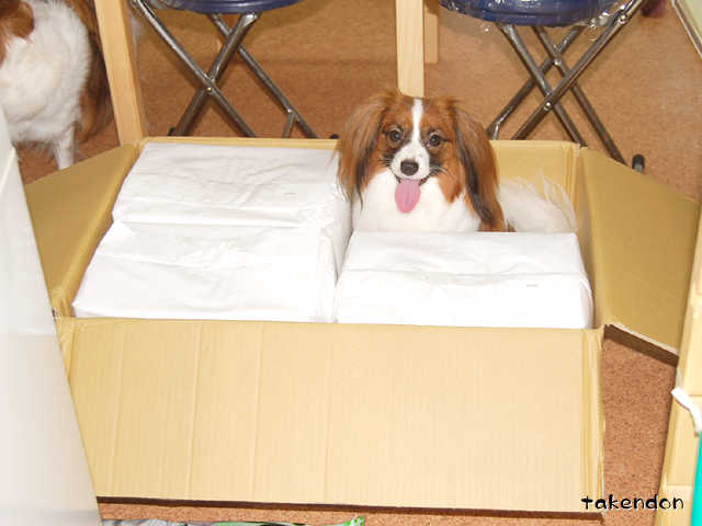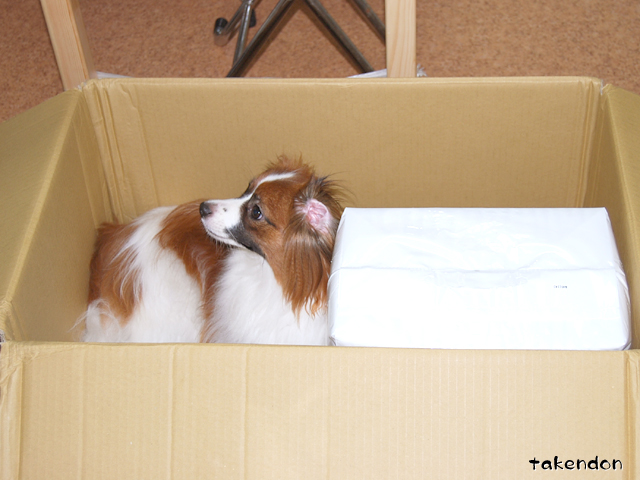 未開封のトイレシートをビリビリに?!鬼だ・・・。うちのは(とくにリンは)中味目当てじゃないので、あんまり関心ないみたいですよ。でもまぁ出しておいても邪魔な荷物なので、さっさと片付けますが。^^その間の箱の様子がこんな感じで、シートと入れ代わりに犬が。こっから箱を畳むのが大変なんですよね。トリミングの仕上がりは素晴らしいけど、さすがに2匹毎月とかは無理ですよ。ジョバンニは一度出してみるべ~ってノリで。あぁいうところって勿論犬の出入りもあるし、何か経験になればいいかな~と淡い期待をしつつ。リンは放置するとボーボーになるので・・・致し方ない。