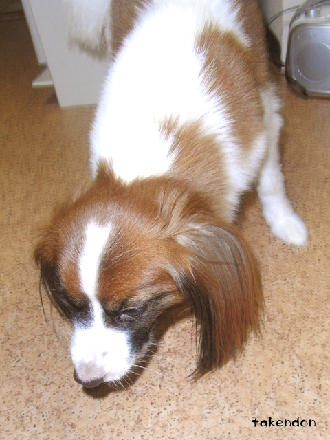 リンの手って、ちょっと浮いてる前脚?これお座りしてないんですよね。中腰くらいで、前の手完全に浮いてるのですよ。ウサギポーズみたいな感じに。