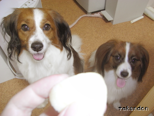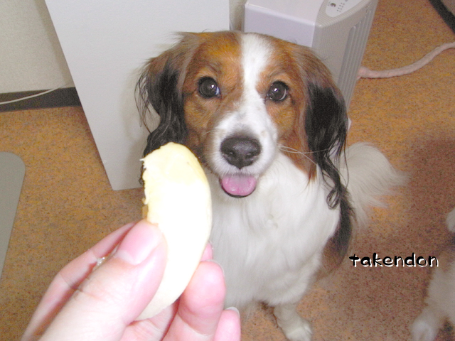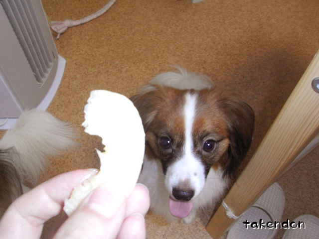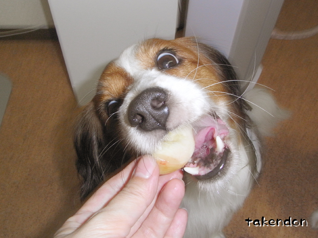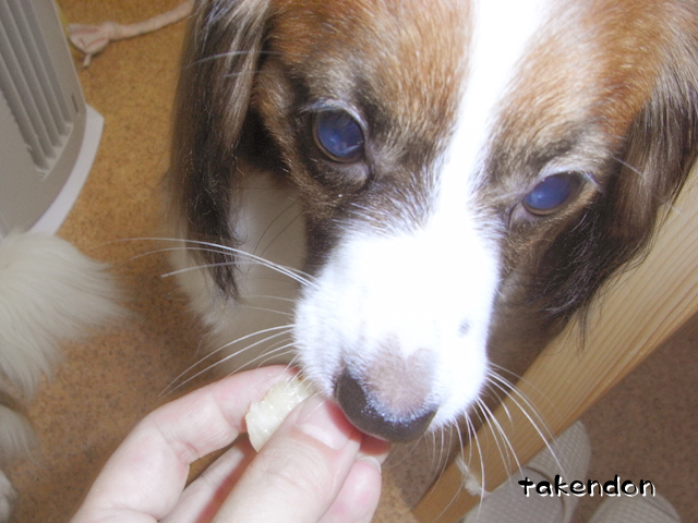 当たりハズレありますよね。高くても何か甘味がスカしてたりするから油断ならない。が、今回は当たりました。チィ姉ちゃんも凄く安かったので全然期待してなくて、むしろ最初から犬達やイグアナにやろうと思って買って来たくらいだったんですが、ちょっと味見したら大当たりだったので喜んでました。(それでも人間はほとんど食べてないけど…)アーニーさんは、もうこれは大喜びの顔ですよ。ちょっとがっつき過ぎて必死さが漂ってますが。(^_^;)