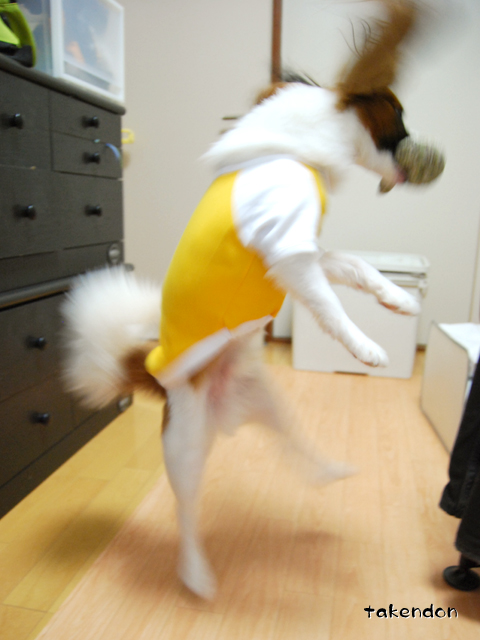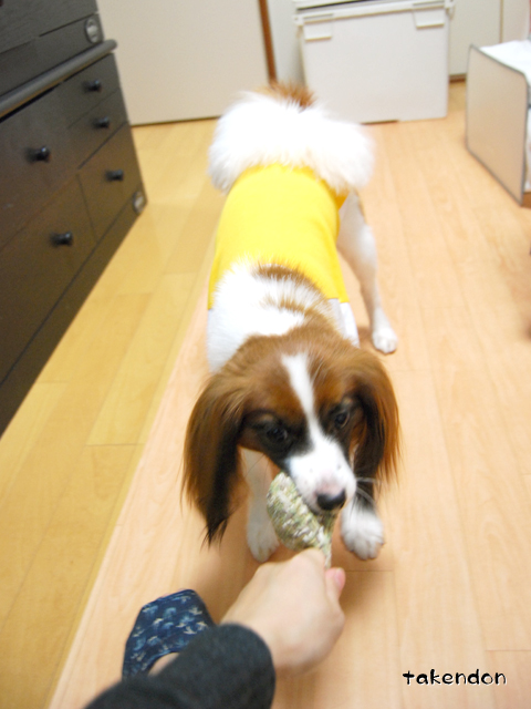 「撮らせた。玩具投げて。」