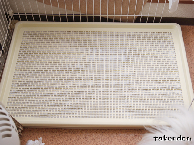 いや、もうねぇ、そんな事言ってる場合じゃなかったんですよ。リンは破いたシート食っちゃうし、ジョバンニはオシッコ我慢して、シート替えたら「漏れちゃウ~!!」みたいに慌ててきてジャーーーーッって。明らかに体に悪そうじゃないですか?しかも人間2人とも風邪ひいてて喉痛いのに、帰ってくると家の中があのポリマーとか言う野郎のせいで埃っぽい訳ですよ。で、疲れて帰ってきて毎日毎日家の中を掃除機かける所からスタートする夜。ノイローゼになりそうでしょ?ほぼ、堪忍袋の緒が切れたみたいな勢いで買いに行きましたよ。(--;ジョバンニが気にするかと心配したのですが、汚れていなければネットだろうが何だろうが良いみたいです。彼は使用後のシートのフニャって感じが不快なんじゃないかな・・多分。