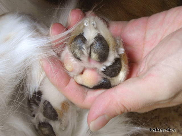 リン君の肉球、ピンク・・・というより白いのね♪