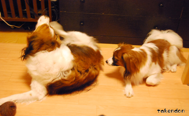 確かに女子と男子では違いますね。ジョバンニは昔から結構モジャ男だったので・・・男子全体的にはこんな感じだと思ってたのですが、実際実物男子コイケルに会ったことが無いので、どうなんでしょう?ロッタちゃんは真っ直ぐな気なんですねぇ。それと大きさでパピヨンに間違われるのかも♪ジョバの背中埋もれてくださっても良いですが・・毛が口に入って「ペッ!ペッ!くそぅ!!」ってなりますよ?